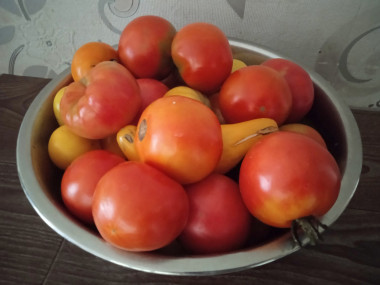 Возьмите спелые помидоры и промойте. Я предпочитаю квасить спелые красные помидоры или бурые.