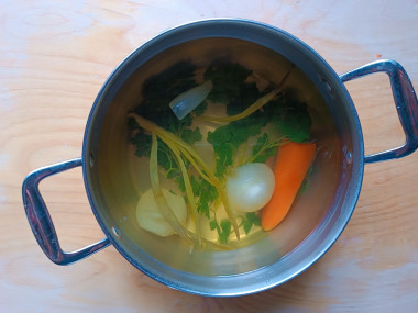 Если вы любите мясные супы, то отварите сначала бульон, а затем действуйте по тем же шагам из рецепта.