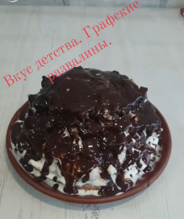 Любимый вкус, классика конца XX века, как бы его не называли и "Графские развалины", и "Кучерявый пинчер", и "Санчо-Панчо", вкус от названия не меняется, он многогранно вкусный, внешне необычный. Самый простой и самый вкусный сметанный крем. Шоколадную глазурь, порой не отличить от шоколада.