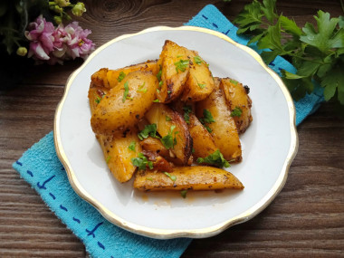 Картофельные дольки стали золотистыми, красивыми, аппетитными! Невероятно вкусно!