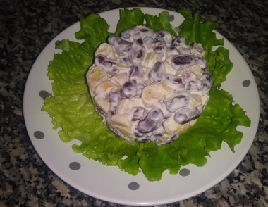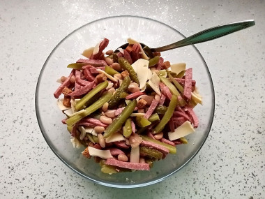 Салат с фасолью, кириешками и колбасой