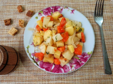 Очень вкусная картошечка получается. Овощи могут быть разные. Кто любит, смотрите вариант запекания картошки с тыквой под фольгой.