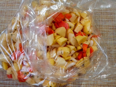 Приготовленный картофель по этому рецепту получается наивкуснейшим, очень ароматным. Благодаря запеканию в рукаве он отлично готовится и держит форму, ведь его не нужно перемешивать в процессе готовки. Ещё одним большим плюсом этого блюда является и то, что картофель готовится не один, а вместе с другими овощами: они делают блюдо ароматным, сытным и полезным. Такой картофель станет прекрасной основой для семейного ужина, детям он тоже может понравиться.