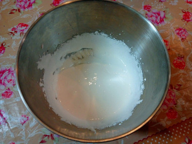 Сахарную пудру я делала сама в блендере, но она вышла не такая мелкая, как покупная, так что очень твёрдых пиков при взбивании белка не получилось.