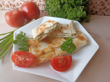 Снимите конвертики из лаваша со сковороды и подавайте к столу горячими. Приятного аппетита!