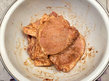 Выбирайте свиную корейку с небольшим количеством жира. Благодаря этому кусочки будут более сочные.