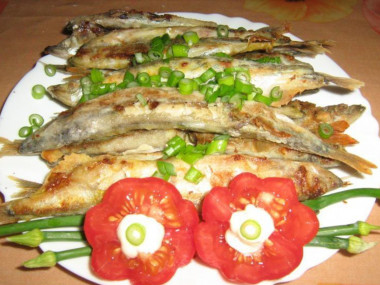 Мойва, жареная в духовке, готова. Подавайте рыбу, украсив дольками лимона. Приятного аппетита!