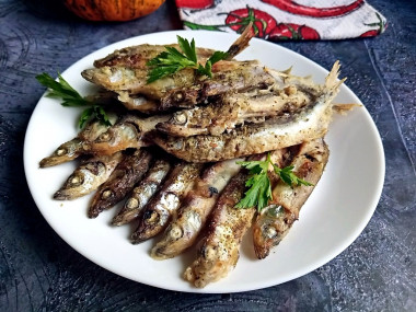 Недавно впервые запекала мойву и она нам так понравилась, что захотелось повторить. Только на этот раз решила разнообразить рыбку и запекала мойву в духовке с корочкой. Рыбки у меня мелкие, не стала их разделывать. После разморозки оставила на разделочной доске подсушиться. Далее нужно обвалять мойву в муке и специях. Я подумала, что мука лучше прилипнет, если рубку сначала заправить растительным маслом. Поэтому сложила мойву в пакет, добавила немного масла, перемешала. Затем всыпала муку, соль и ароматные травы. Снова потрясла пакет. В итоге все рыбки оказались в панировке, отличный совет! Запекала 20 минут, за это время рыбки хорошо пропеклись и стали золотистыми. Мойва, запеченная таким образом, получилась вкусной, с хрустящей корочкой, ароматной. Мы ели её просто так на перекус.