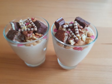 Вкус десерта можно разнообразить, используя различные добавки, например, грецкие орехи. Кроме приятного орехового привкуса они сделают лакомство более полезным. Можно также добавить песочное печенье, Оставшийся банан нарежьте на кружочки, из них сделайте прослойку десерта и украшение для него.