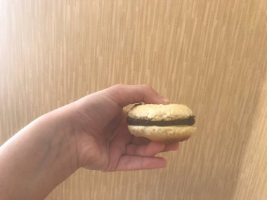 Из данного количества продуктов у меня вышло десять готовых макаронс. Получились они у меня со второго раза. Первый раз я плохо вымешала муку с меренгой, и пирожные не приняли правильной круглой формы, а поверхность их осталась комковатой. Но на второй раз все вышло отлично!