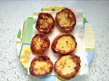Жарятся гренки очень быстро. Кстати к растительному маслу я добавила кусочек сливочного. Так гренки получились еще нежнее. Готовые гренки выложила на бумажное полотенце, чтобы впитался лишний жир.