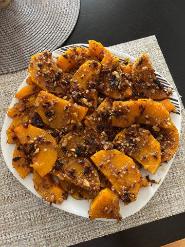 Медовый десерт из тыквы кусочками запеченной в духовке