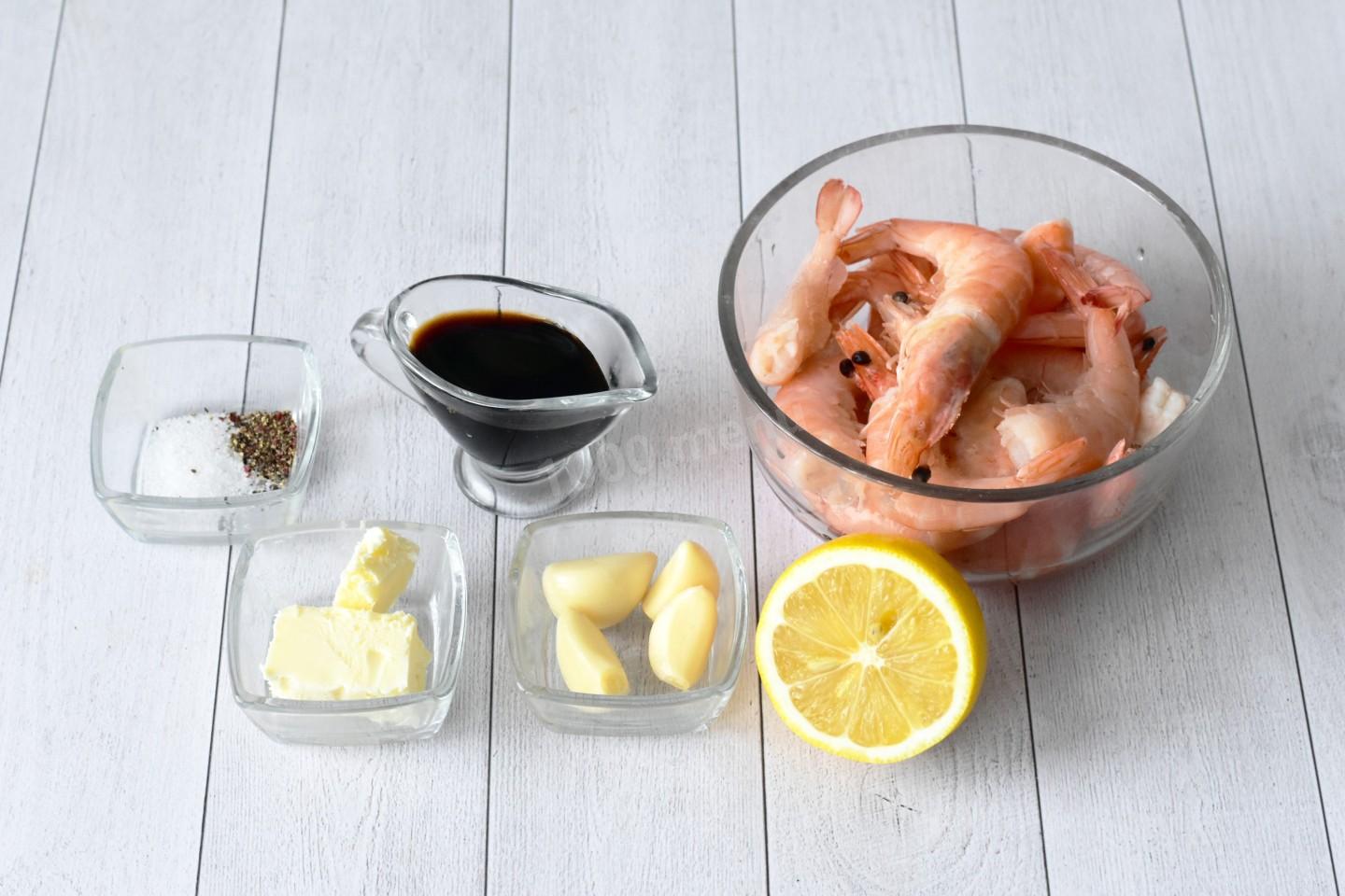 Подготовьте необходимые ингредиенты. Королевские креветки можете заменить другим видом креветок по вкусу. Например, более крупными аргентинскими или наоборот мелкими. При добавлении соевого соуса в блюдо стоит учесть, что он имеет достаточно соленый вкус. Уменьшите общее количество соли, иначе рискуете пересолить.
