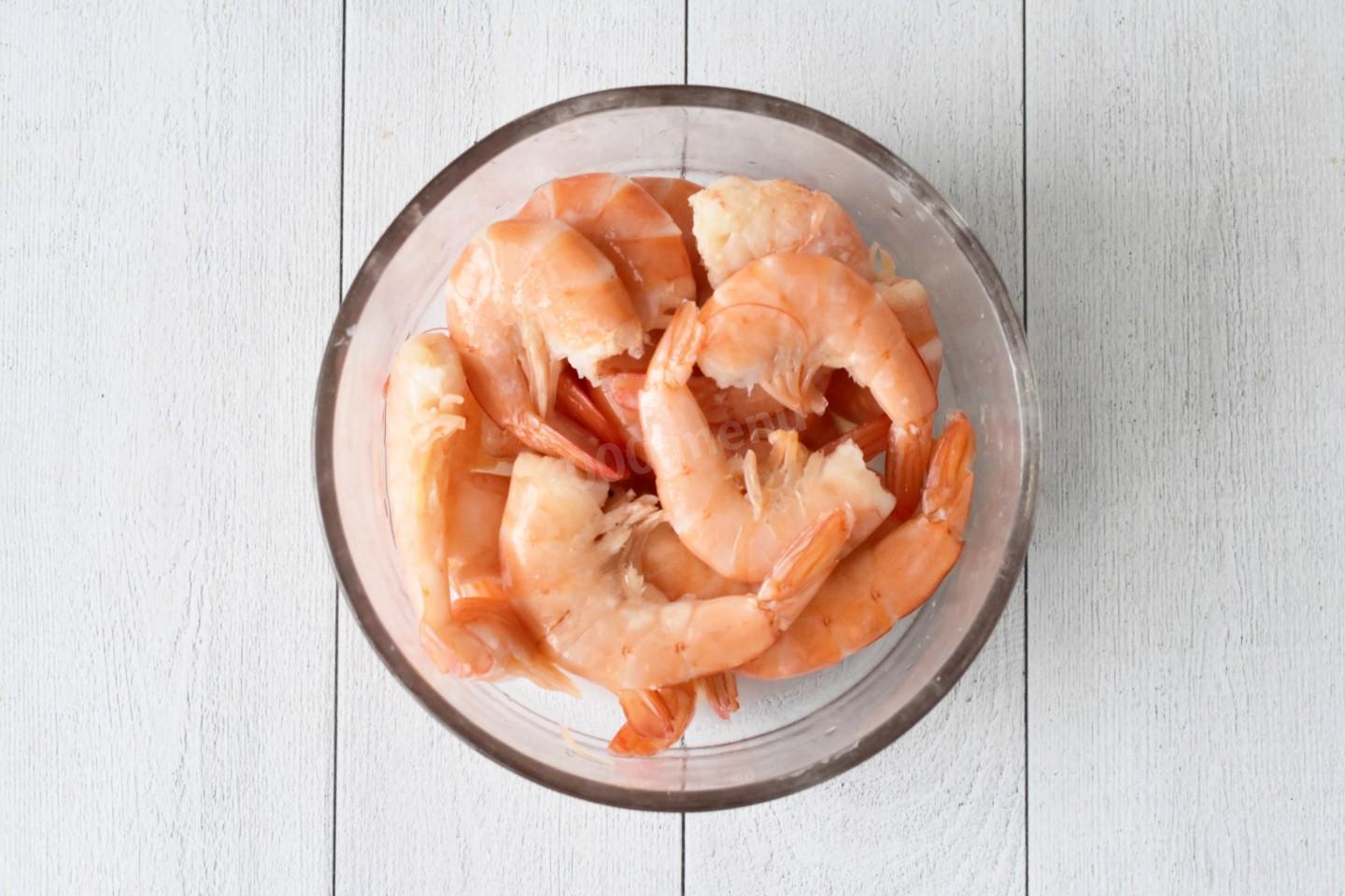 Креветки предварительно разморозьте. Воду слейте, креветки обсушите. Удалите у креветок голову. По желанию можете очистить и от панциря. О всех тонкостях правильной разморозки читайте в отдельной статье, ссылка в конце рецепта.