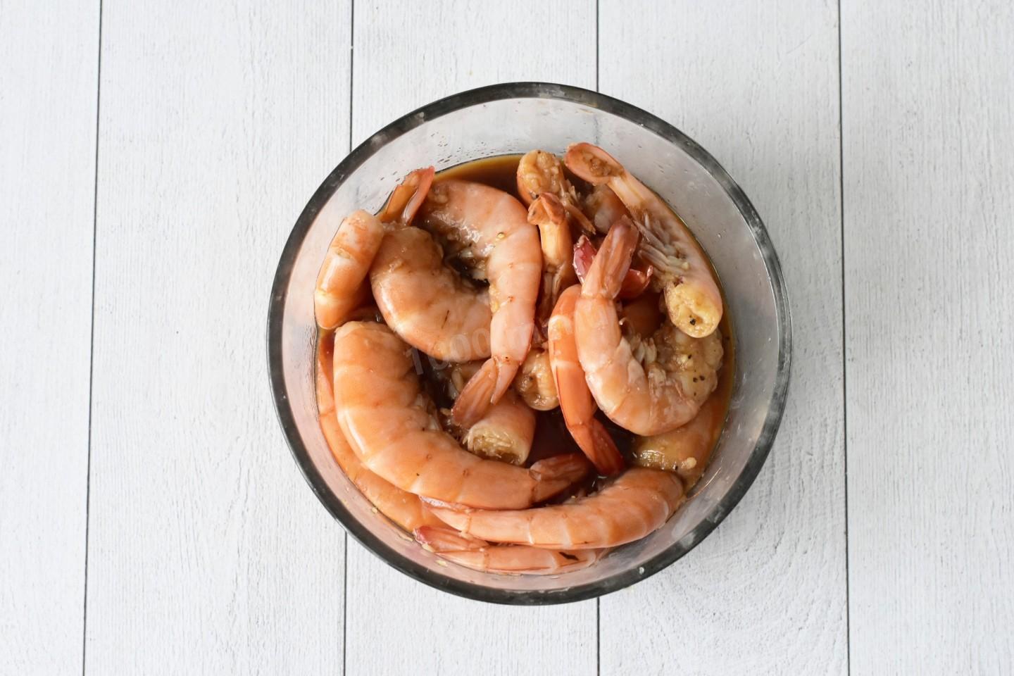 Шаг 1. Как вкусно пожарить креветки в панцире с чесноком в соевом соусе на сковороде?