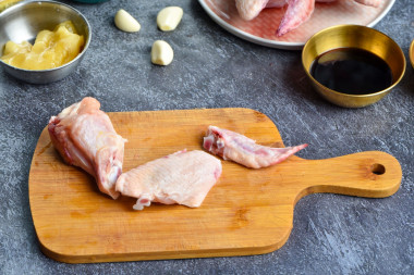 От каждого куриного крылышка отрежьте самую маленькую часть. Она нам не пригодится - в ней практически нет мяса.