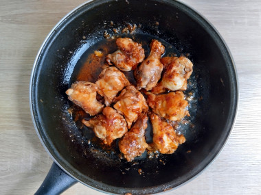Рецепт крылышек в медовом соусе на сковороде показался мне быстрым, и я выбрала его для приготовления ужина. Крылышки, точнее их плечевая часть, были охлаждённые, не замороженные. Слегка обжарила их на растительном масле. Отдельно приготовила маринад, туда же добавила соль и лимонный сок. Очень люблю кисло-сладкие соусы с добавлением мёда, и такой вариант с томатной пастой мне понравился тоже. Получилось вкусное блюдо, к тому же быстрое в приготовлении, ничего мариновать заранее не нужно. Рецепт отличный, крылышки получились здорово!