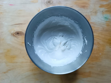 Возьмите яичные белки комнатной температуры, поместите в чистую и обезжиренную чашу. Взбейте их миксером на средней скорости до образования легкой пены. Подробнее о выборе яиц и их взбивании читайте по ссылкам под рецептом. Продолжайте взбивание подсыпая сахар небольшими порциями. Сахар лучше взять мелкий либо его можно заменить на сахарную пудру. Взбивайте белки до устойчивой и крепкой пены. Если перевернуть чашу с белками, белки должны оставаться в чаше.