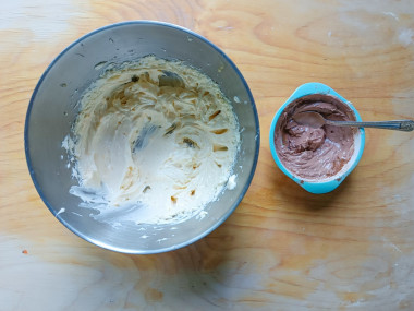 Сливочное масло комнатной температуры взбейте миксером до побеления. Небольшими порциями введите заварной крем. Крем должен получиться пышным, гладким и однородным по консистенции. Сливочное масло для крема желательно достать из холодильника примерно за 3 часа до начала приготовления. От этого будет зависеть получится ли крем.