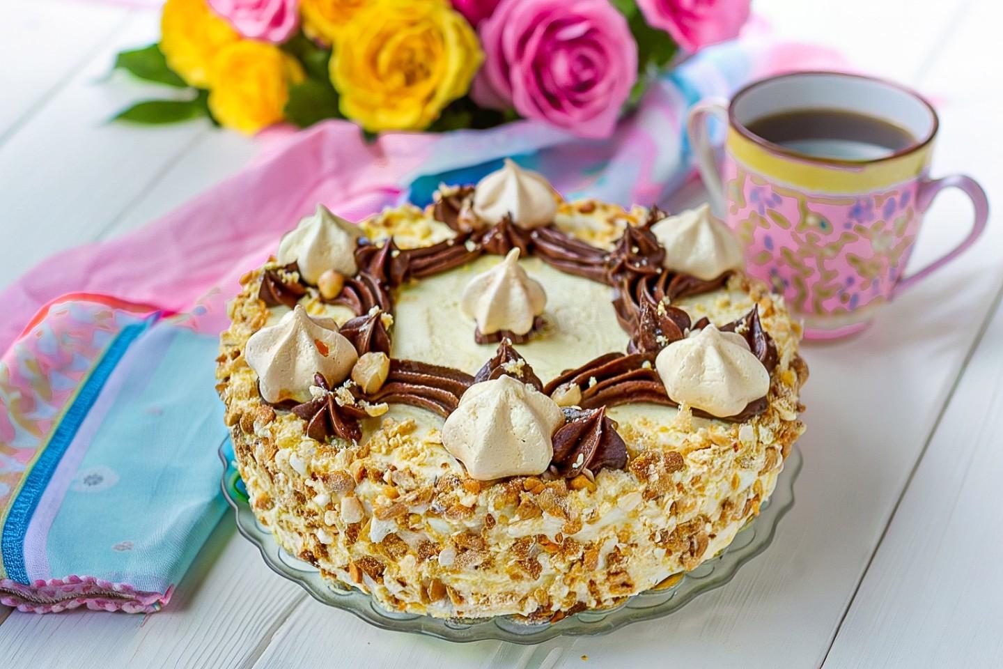 Этот торт часто подавали в советских кафе и столовых как праздничный вариант.