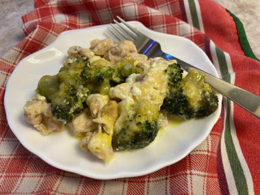 Для тех, кто любит капусту брокколи такой вариант её приготовления придётся по вкусу. Здесь сохраняются полезные вещества овоща, а также его приятный изумрудный цвет. А в компании с курицей, сыром и сливками получается ещё и очень вкусно.