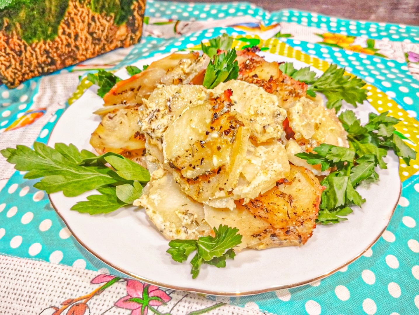Картошка в сметане в духовке запечённая получилась аппетитной,сытной и очень вкусной!
