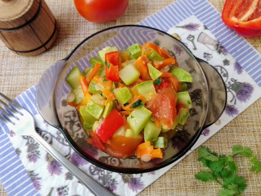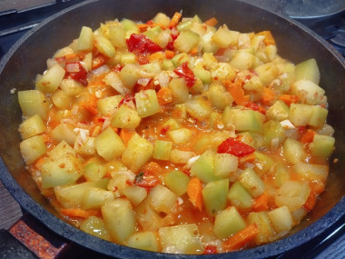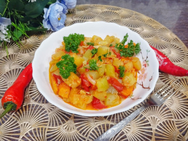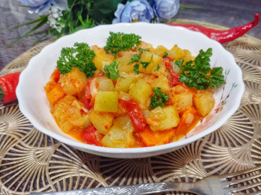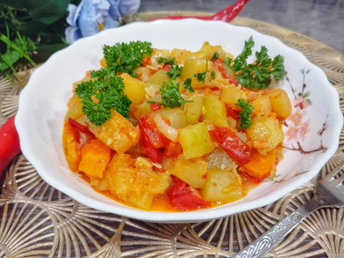 Есть вариант тушеных кабачков с болгарским перцем, кабачками и картошкой.