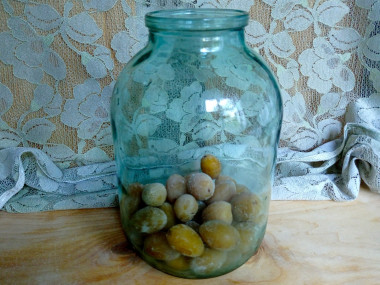 Сахара я решила взять 300 г., так послаще на вкус получилось. После заливки оставила банки на час, чтобы сливы хорошо пропитались водой. А вот проткнуть кожицу зубочисткой забыла и некоторые сливки лопнули, но это не критично) И еще я заметила, что налет на сливе в последствии всплывает на поверхность и образует пленку. Не знаю вредно ли это при хранении, но на всякий случай я тщательно вытерла каждую сливку после мытья.