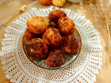 Из готового теста скатайте небольшие шарики, размером примерно с грецкий орех. Если тесто немного липнет, то руки можно смазать растительным маслом.