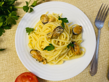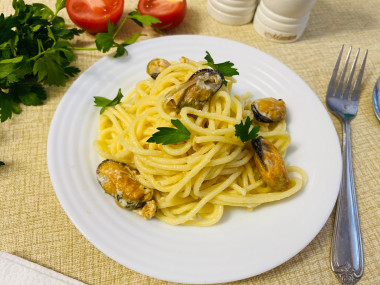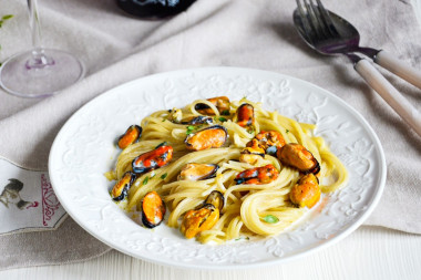 Паста с мидиями в сливочном соусе это отличная идея для ужина выходного дня!