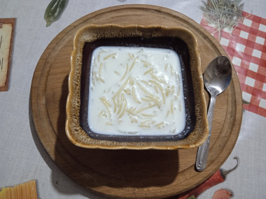 Затем снимите с огня, накройте крышкой и дайте постоять минут 5-7. За это время вермишель дойдет до нужной готовности. Готовый суп с вермишелью на молоке разлейте по тарелкам и угощайтесь. Приятного аппетита!