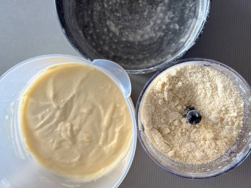 Взбейте все в крошку. Можно тесто не взбивать, а растереть в крошку руками, но это дольше. Поэтому я теперь всегда пользуюсь блендером, если нужно сделать подобную крошку. Готовую крошку пересыпьте в мисочку и поставьте в холодильник, пока готовится начинка. Она нам понадобится позже.Шаг 4: