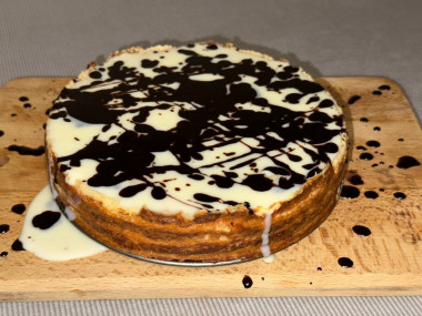 Нанести растопленным шоколадом узоры на поверхности пирога. Охладите ватрушку и разрежьте на порционные кусочки.Шаг 19: