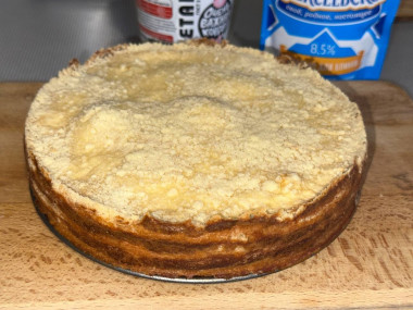 Сверху распределите третью часть творожной начинки. Таким образом чередую слои заполните форму. Последним слоем должна быть мучная крошка. Всего у меня получилось 3 слоя творожной начинки и 4 слоя мучной крошки. Слоев можно сделать и чуть меньше, но они будут потолще.Шаг 9: