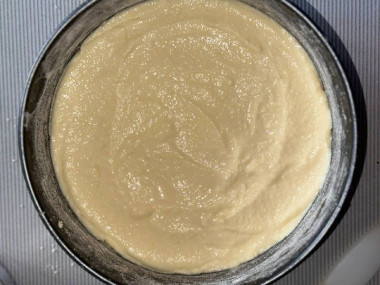 Взбейте все в однородную массу. Я сначала добавила 2 яйца, как указано в рецепте, однако начинка получилась уж очень вязкой. Ее было тяжело размазывать по тесту. Это грозило смещением слоев, поэтому я добавила в начинку 3 яйца и взбила еще раз. Получилась нормальная полувязкая текучая консистенция, которая очень легко распределялась по тесту. Ориентируйтесь по консистенции массы и корректируйте при необходимости.Шаг 7:
