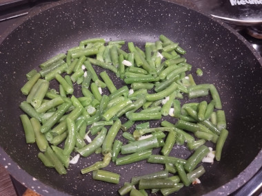 Один раз попробовав стручковую фасоль, каждый раз ищу новые рецепты приготовления. Замороженная стручковая фасоль на сковороде-лёгкое,простое,полезное и вкусное блюдо! Фасоль отварила несколько минут в кипящей воде. Пластинки чеснока обжарила на растительном масле, затем убрала чеснок и выложила в ароматное масло стручковую фасоль. Добавила измельчённый чеснок,перемешала и обжарила фасоль с чесноком до готовности несколько минут.