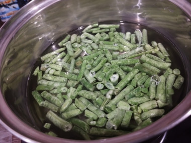 Как пожарить замороженную стручковую фасоль на сковороде? Подготовьте продукты. Фасоль можно использовать как покупную, так и со своего участка. Покупая фасоль в магазине, нужно обязательно проверить срок годности, стручки фасоли должны легко отделяться друг от друга, не быть слипшимися в один комок.