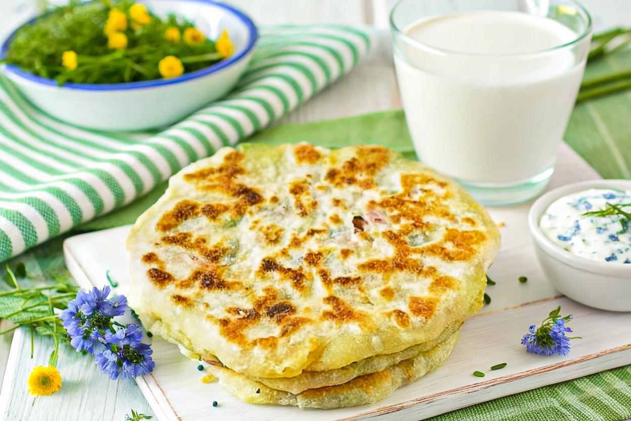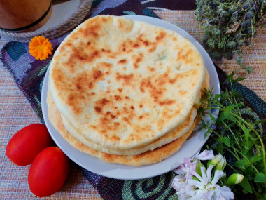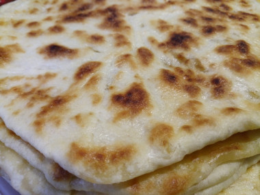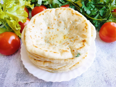 Тесто можно замешать на кефире, тоже лепешки пышными получаются.