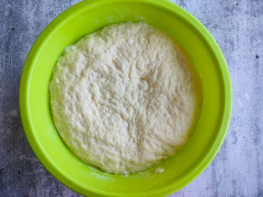Тесто должно получиться эластичным, гладким и слегка липнущим к рукам. Положите тесто обратно в миску и поставьте на полчаса в теплое место, прикрыв сверху полотенцем или затянув пищевой пленкой.