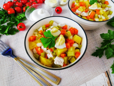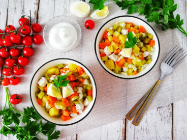 Традиционный салат оливье давно стал символом праздничного стола, однако иногда хочется внести разнообразие, сохранив при этом атмосферу домашнего тепла и уютного застолья. Я предложила своей семье попробовать легкий вариант любимого блюда, добавив в привычный рецепт пикантные ноты свежести и аромата природы. Нашла на сайте рецепт оливье с курицей и внесла свои изменения.