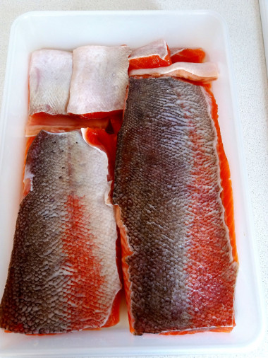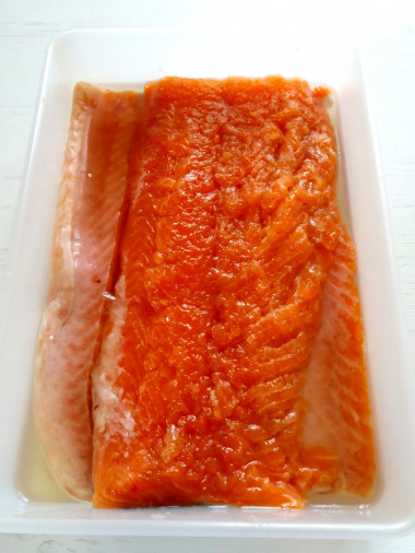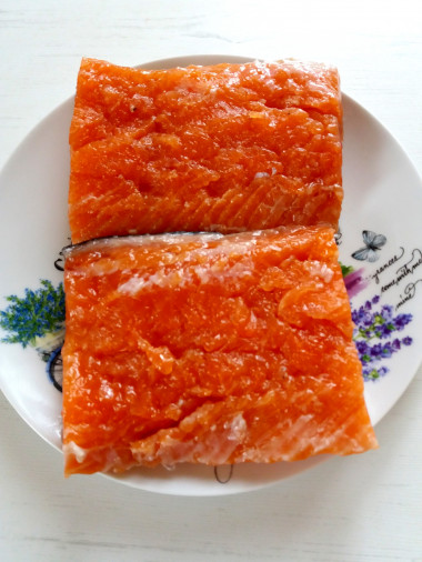 Здравствуйте, совсем нет информации как вы убирает соль после засолки, смываете под проточной водой? Вымачиваете?Привет Наташа! Убирать соль нет необходимости. И соль, и сахар полностью растворяются и рыба всё впитывает. Рыба получается малосольной, я часто готовлю по этому рецепту, вкус изумительный. Пропорции выверены и проверены неоднократно. Если ваша рыбка иного веса, воспользуйтесь калькулятором изменения порций, я специально всё указала в граммах. Соль не меняйте, берите крупную для засолки, от соли многое зависит. А поскольку рыба хорошо промывается перед посолом, потом промывать не надо. Да, и учитывайте, что указан вес чистого филе. Удачи !
