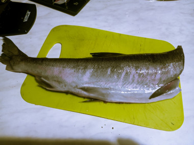 Рыбу хорошо промойте под прохладной проточной водой, тщательно поскоблите тушку ножом от хвоста до головы, счищая чешую. Рыба скользкая, но этот этап важный, поскольку с разделанной рыбой это не проделать. Если вы будете использовать голову, например, для ухи, то её также хорошо очистите и удалите жабры.