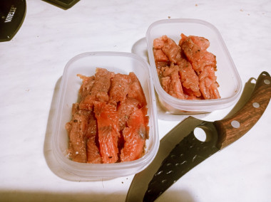Давно хотел самостоятельно посолить красную рыбку. Вот решился. Для меня самое сложное было фелирование. Оказалось что вполне реально и не сложно))) Главное чтобы нож был острый. Купил кижуч уже потрошоный без головы. Сделал из него филе. Разрезал каждую филешку на две части. Рыбу посолил смесью из соли, сахара и перца. Положил как в рецепте в контейнер, закрыл крышкой и убрал в холодильник. Утром слил выделевшийся сок и оставил еще на сутки. Рыбка получилась малосольной и нежной. Можно было еще подержать сутки для более соленого эфекта, но не выдержал))) Срезал с шкуры кусочками и уложил в контейнеры. Один пошел в морозилку, а второй в холодильник. Пропорции соли и сахара взял 2/1. Перец на глаз буквально пару щепоток. Спасибо автору за рецеепт)