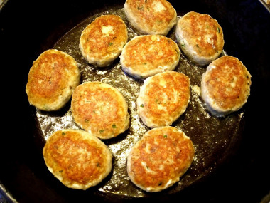 В сковороде разогрейте растительное масло. О том, как правильно выбрать сковороду и масло, читайте в отдельных статьях по ссылкам в конце рецепта. Выложите на сковороду подготовленные котлеты. Обжарьте котлеты сначала с одной стороны до румяной корочки, затем, перевернув, обжарьте уже с другой стороны.