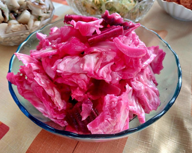 Мне очень нравится маринованная капуста со свеклой. Автору спасибо за напоминание, надо будет приготовить) ТОлько я немного по другому готовлю, добавляя морковку.