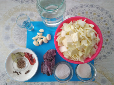 Как сделать капусту с чесноком и свеклой быстрого приготовления? Подготовьте необходимые продукты. Капусту советую брать поздних сортов, она лучше всего подходит для засолки и маринования. Свеклу выбирайте яркую, темно-бордового цвета, блюдо будет выглядеть красивее. Вместе со свеклой можно положить и другие овощи - морковь, болгарский перец.