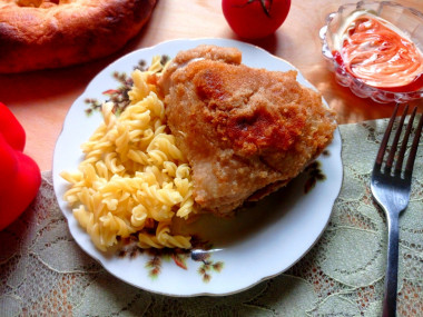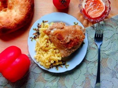 Этот рецепт хорош своей простотой и небольшими затратами времени на приготовление. А результат не может не радовать. Куриные бедра получились сочные, ароматные, с аппетитной корочкой из панировочных сухарей. Приготовленная по этому рецепту курочка хороша как для семейного ужина, так и для праздничного застолья. Подавала куриные бедра с макаронами.