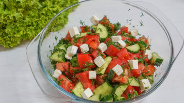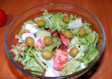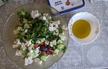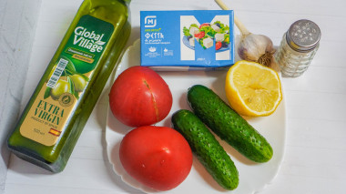 На лето такой салатик с фетой, овощами и больше ничего и не надо. Мне еще нравится в заправку добавлять бальзамический уксус, с помидорами прекрасно сочетается.