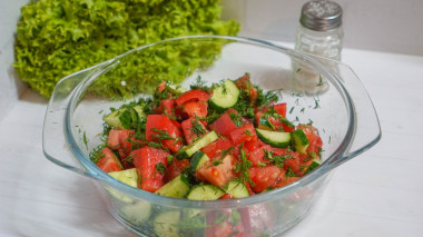 Мне очень нравятся свежие овощные салаты с добавлением сыра феты, в этот раз я решила приготовить салат с сыром фета и помидорами. Овощи промыла, обсушила и нарезала в миску для салата. Сделала лимонно-чесночную заправку с добавлением оливкового масла. К овощам добавили нарезанный свежий укроп, добавила заправку и перемешала. Далее нарезала кубиками фету и выложила в салат.