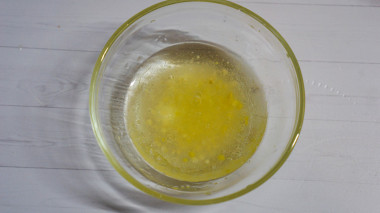 Приготовьте заправку для салата. Как сделать заправку? Смешайте оливковое масло с лимонным соком, немного посолите.